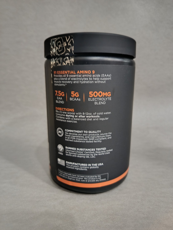 برای مصرف مکمل RULE1 ESSENTIAL AMINO 9، یک پیمانه (حدود ۱۱.۵ گرم) از این مکمل را با ۲۳۵ تا ۳۵۵ میلی لیتر آب سرد یا نوشیدنی مورد علاقهتان مخلوط کرده و میل کنید.