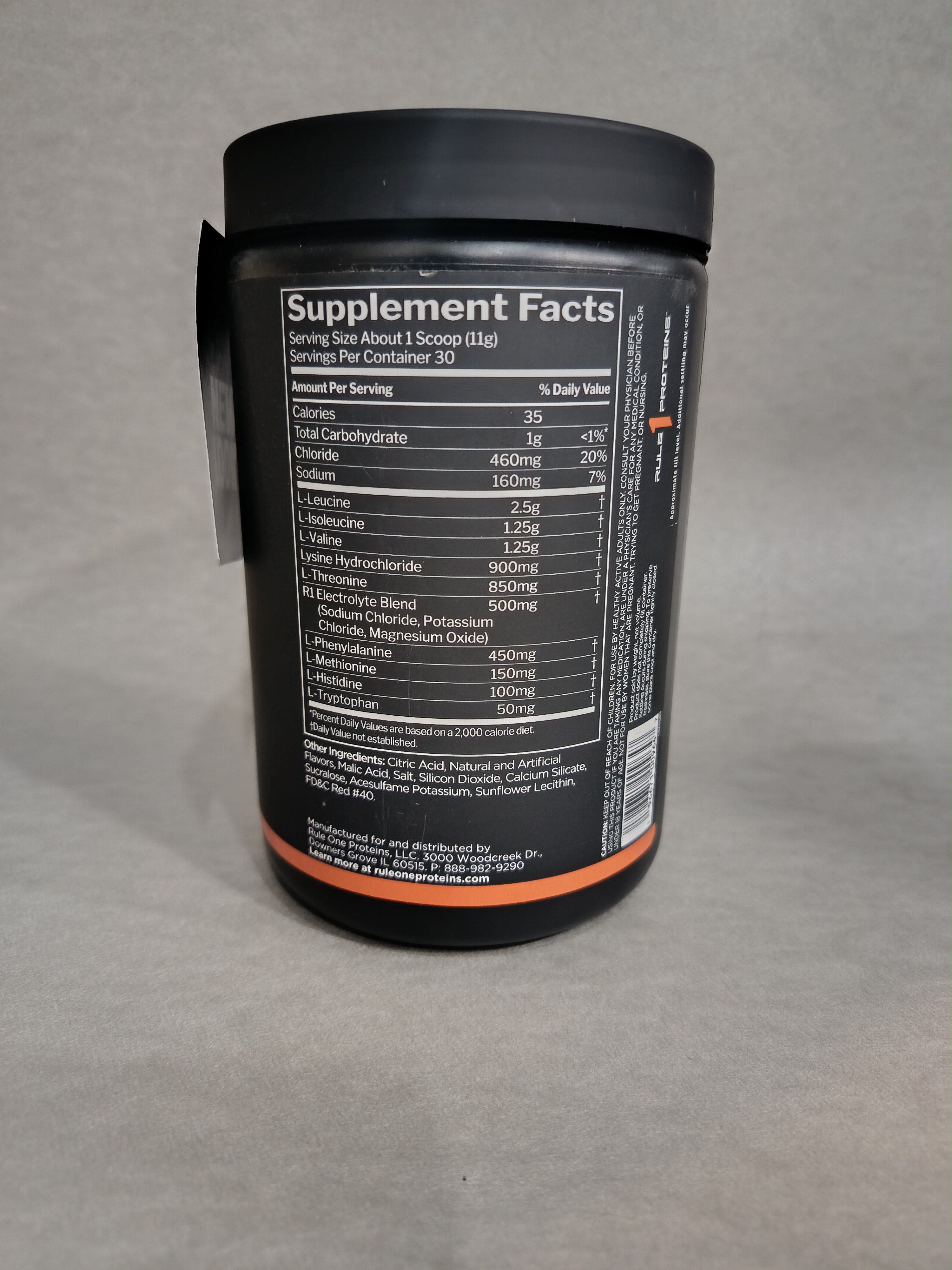 هر پیمانه این مکمل (حدود ۱۱.۵ گرم) شامل ۱۰ کالری، ۱ گرم کربوهیدرات کل، ۴۶۰ میلی گرم کلراید، ۱۶۰ میلی گرم سدیم، و ۷.۵ گرم از اسیدهای آمینه ضروری (لوسین، ایزولوسین، والین، لیزین هیدروکلراید، ترئونین، فنیل آلانین، متیونین، هیستیدین و تریپتوفان) است. همچنین، ۵۰۰ میلی گرم ترکیب الکترولیت نیز در این محصول RULE 1 وجود دارد که به هیدراتاسیون بدن کمک میکند. مکمل آمینو EAA رول وان بدون گلوتن، قند و مواد ممنوعه است و دارای تاییدیه GMP آمریکا میباشد همچنین، در چند طعم مختلف از جمله لیموناد بلو رازبری، انبه هلو، آب نبات رنگین کمانی و پانچ میوه عرضه میشود.