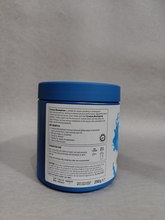 کراتین مونوهیدرات اپلاید نوتریشن Applied CREATINE MONOHYDRATE برای افرادی که در تمرینات طولانی مدت یا با شدت بالا شرکت می کنند و به دنبال بهبود عملکرد بدنی هستند مناسب است. با خرید کراتین اپلاید نوتریشن از خواص بینظیر این محصول بهره مند شوید. کراتین Applied Nutrition خالص ترین و راحت ترین فرمول کراتین مونوهیدراتی است که می توانید استفاده کنید. مطالعات نشان می دهد که افزایش سطح کراتین به تاخیر در شروع خستگی، افزایش متابولیسم انرژی در سلول های عضلانی و افزایش توانایی کلی بدن کمک می کند.کراتین مونوهیدرات عملکرد بدنی را در دوره های متوالی تمرینات کوتاه مدت و با شدت بالا افزایش می دهد